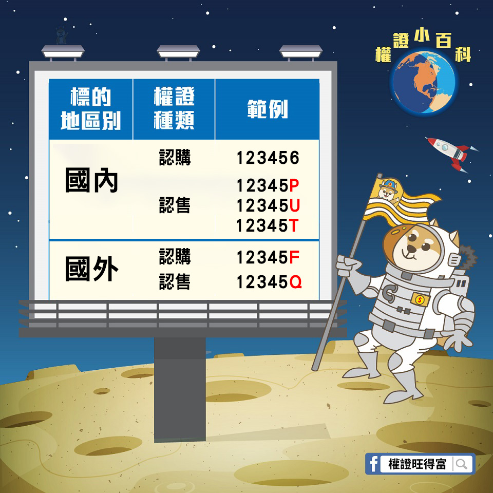 海外標的的認購權證前5碼為數字,第6碼固定為 「 F 」